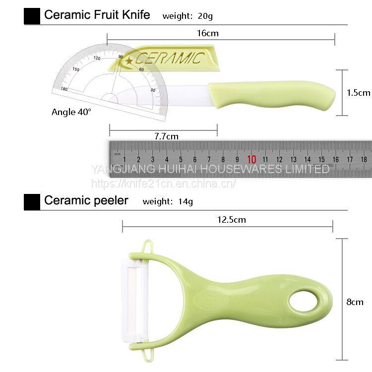 ceramic fruit knife:16cm ceramic peeler:12.5cm |