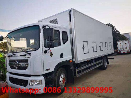 The cold van body dimension of Dongfeng D9 day old chicks transported carrier is 6800*2340*2470(mm). The interior and exterior of the van box body with fiber reinforced plastics(FRP), and the middle insulation layers of 80mm thickness PU foam. There are sliding windows and waterproof blind-windows. The air will be from the van body floor ventilation