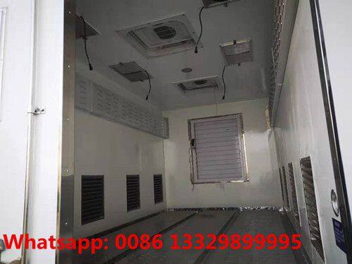 Left and right sides of the van body are with 12 sets 40*40 Mesh Plates for the cold air from the reefer. There are several 320*320 electronic ventilator fans mounted on the truck top and the rear door plate. Folding Shelves are for the two sides van body. Both Two sides of the van body with 5 blind-windows; while top mounted sky-window. Three lines of ventilator Air Ducts mounted on the van floor. The reefer choose high quality China made engine-powered refrigerator( the lowest temperature inside the cold room box up to -10℃, adjusted at the driver cab). The heating system is selective.