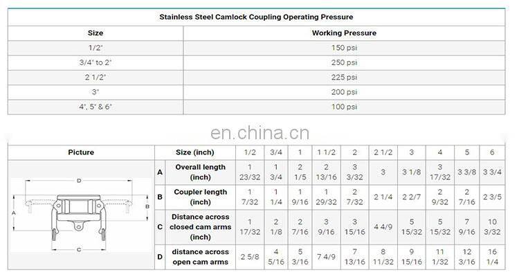 Stainless Steel Camlock Coupling For Structure Pipe Safety Coupling End Type DC