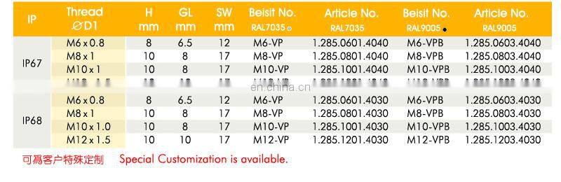 Other material or colors upon request。 | IP66/IP67/IP68/ROHS/REACH | |||||