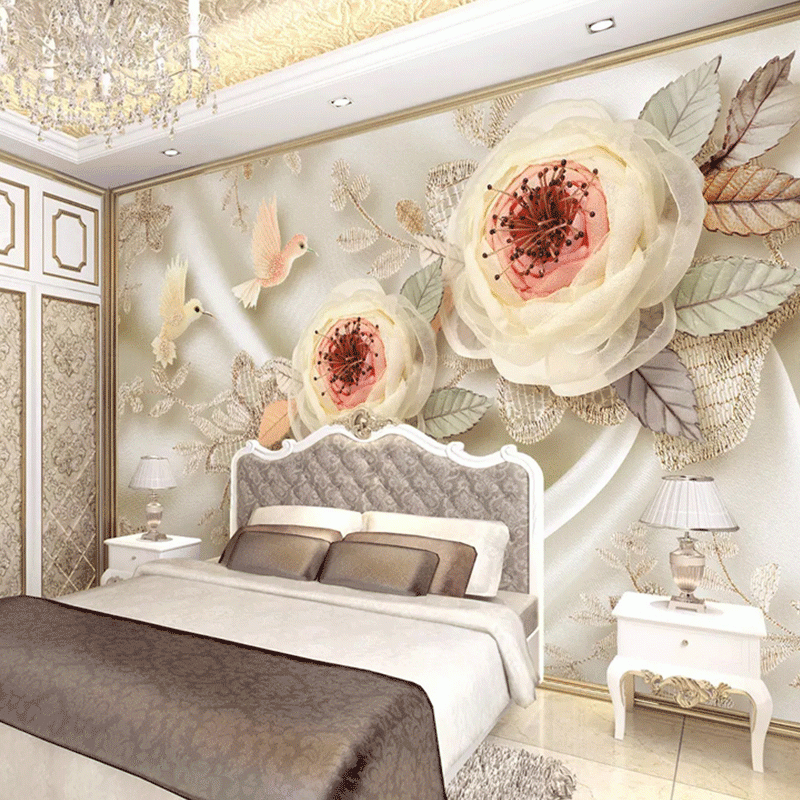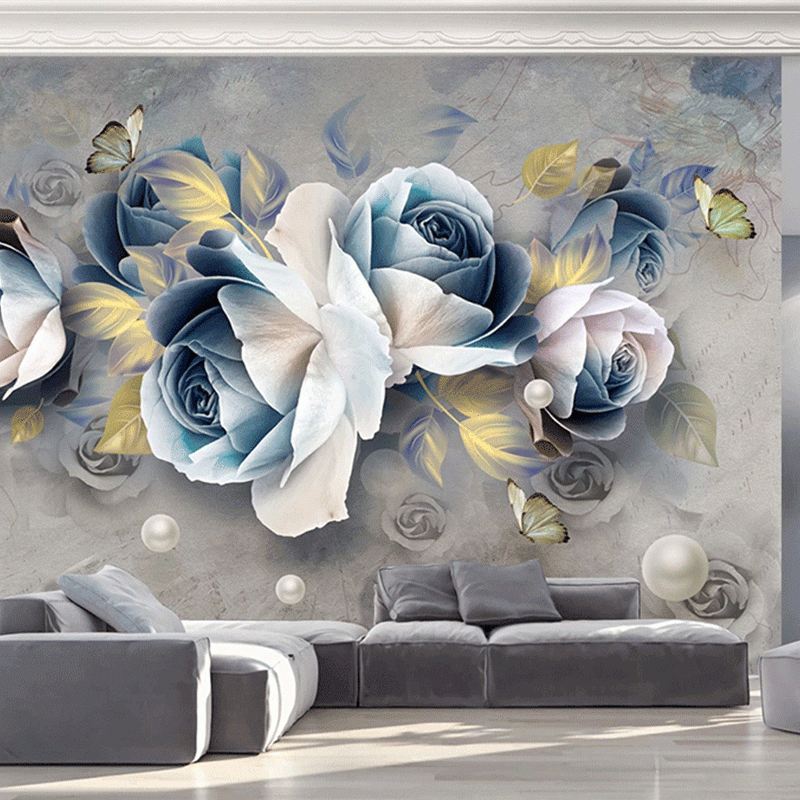 China Manufacturer Flower Designs Custom Size 3D 5D Wallpaper For Home Decoration Mural Wall Paper Drop Ship