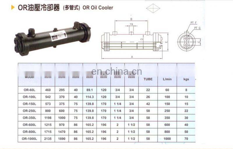 Injection Molding Machine Water- Cooled Oil Cooler OR60 OR100 OR150 OR250 OR350 OR600 Multipipetube Heat Exchanger