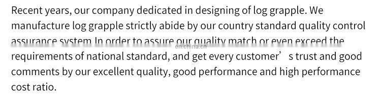 We are supplier provide various grabs including log grabs, hydraulic grapples, orange peel grabs and so on.