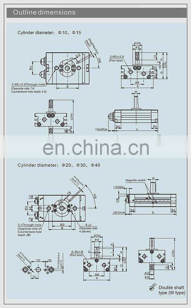Cylinder diameter | 10 | 15 | 20 | 30 | 40 | ||||||