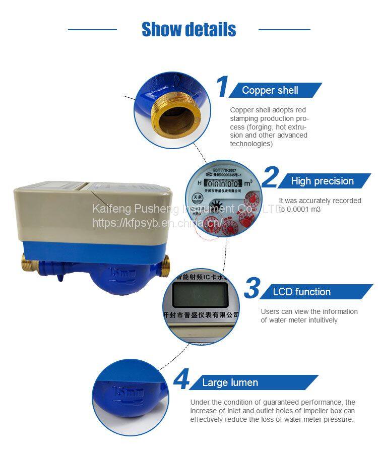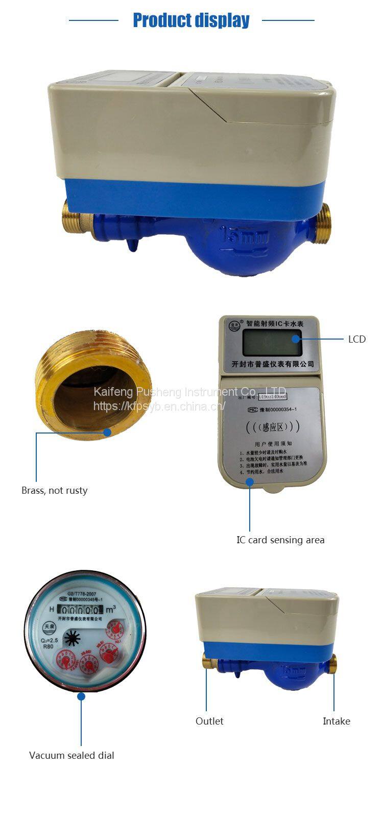 IC intelligent prepaid water meter is composed of microchip module, control valve, LED display, card reader and billing management system. The amount of water is displayed directly on the screen, and water can be controlled as a pre-payment.