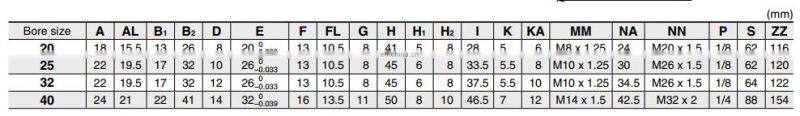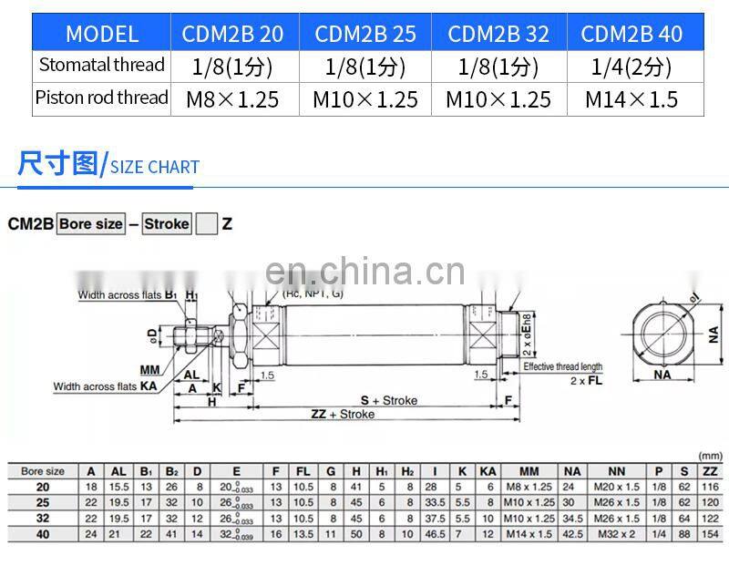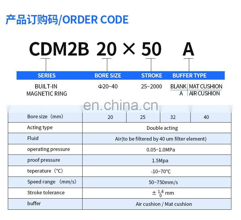 CDM2B20X25 CDM2B20X50 CDM2B20X75 CDM2B20X100 CDM2B20X125 CDM2B20X150 MF/CDM2E Mini Pneumatic Cylinder