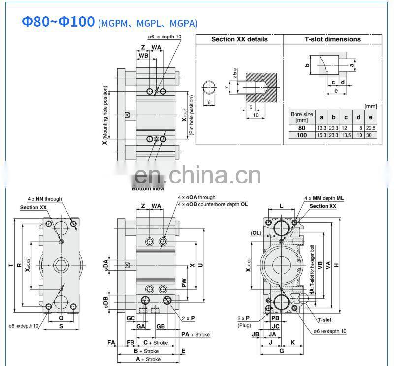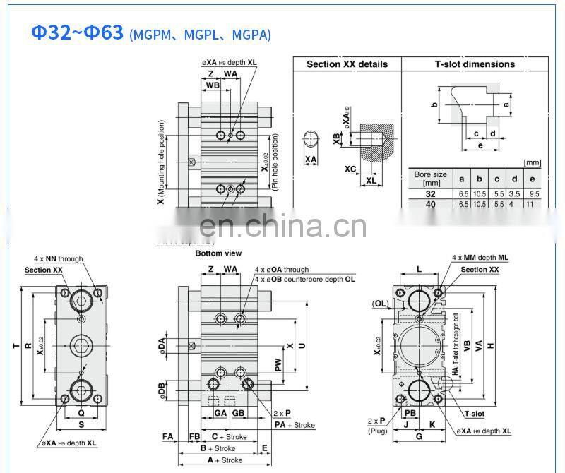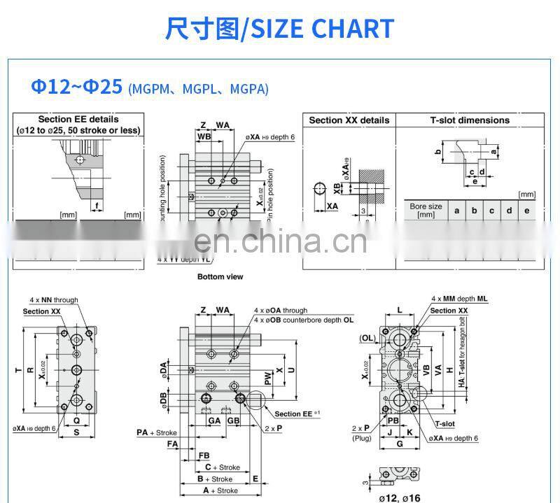 MGPM12X10 MGPM12X20 MGPM12X25 MGPM12X50 MGPM12X75 MGPM12X100 MGPM12X125 Tri-rod MGPL TCM TCL Pneumatic Cylinder
