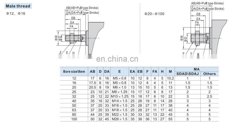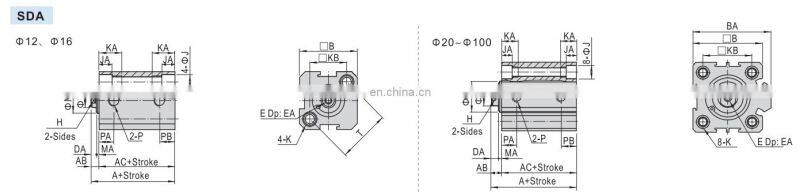 SDA Series Stainless Steel Body Material Standard Standard Nonstandard Pneumatic Air Cylinder