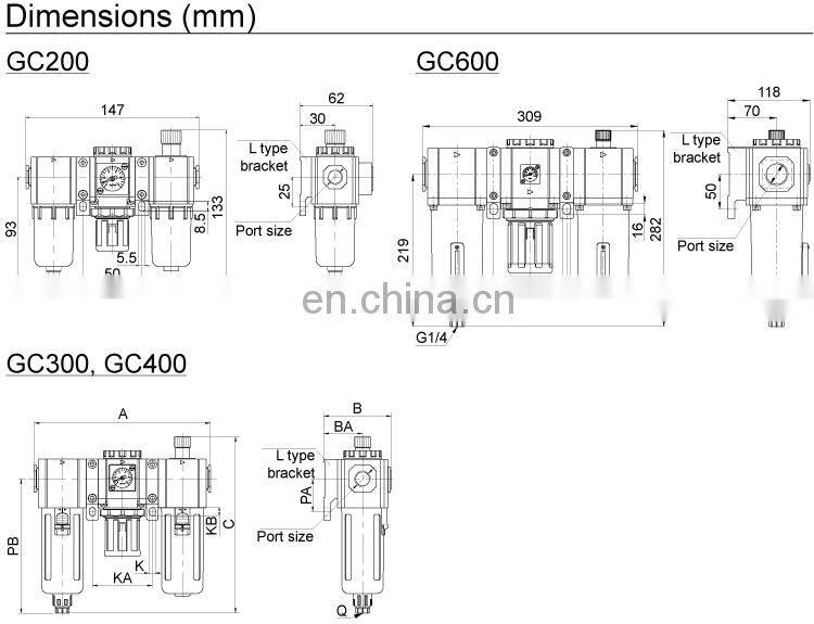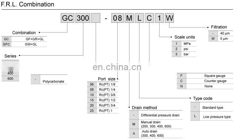 China FRL GC200 GC300 GC400 Pneumatic Units Component