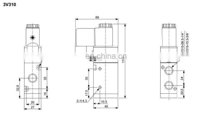 3V110-06/m5 3V210-06/08 3V310-08/10 3V410-15 2/3 Way Single Solenoid Valve Stock