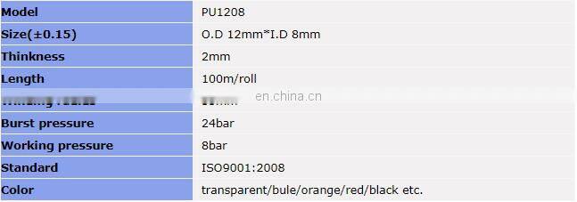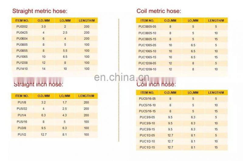 PU4*2.5 PU6*4 PU8*5.5 PU10*6.5 PU12*8 PU14*10 PU16*12 Pneumatic Air Pipe Hose PU1/8 PU1/4 PU3/8 PU1/2