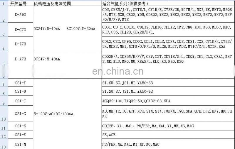 CS1-U Air Pneumatic Cylinder Magnetic Reed Switch Sensor , Pneumatic Parts