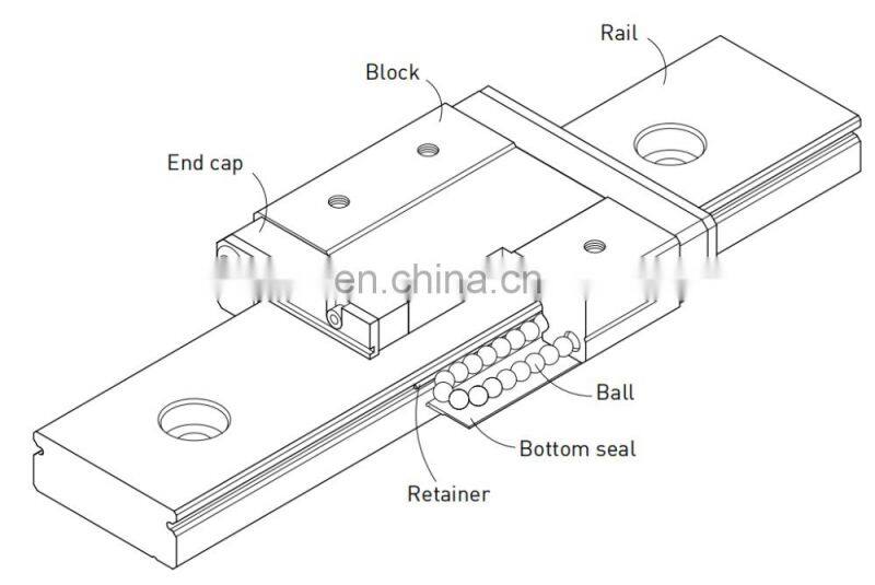 · Steel balls are held by a miniature retainer to avoid balls from falling out,even wen the blocks are removed from the rail.