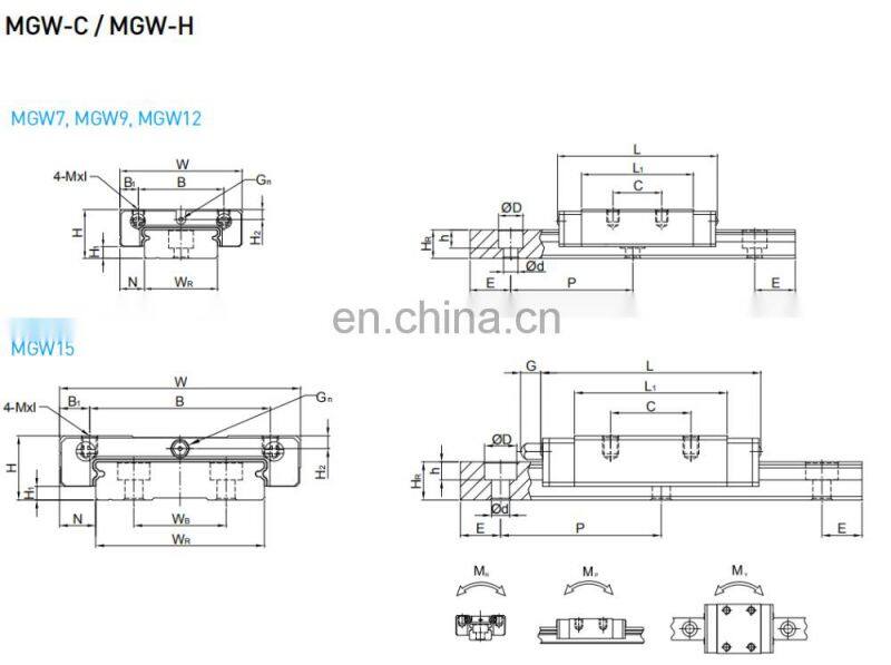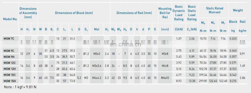 YGW/MGW5C MGW7H MGW9C MGW12H MGW15C Linear Guideway Miniature Linear Rail Guide