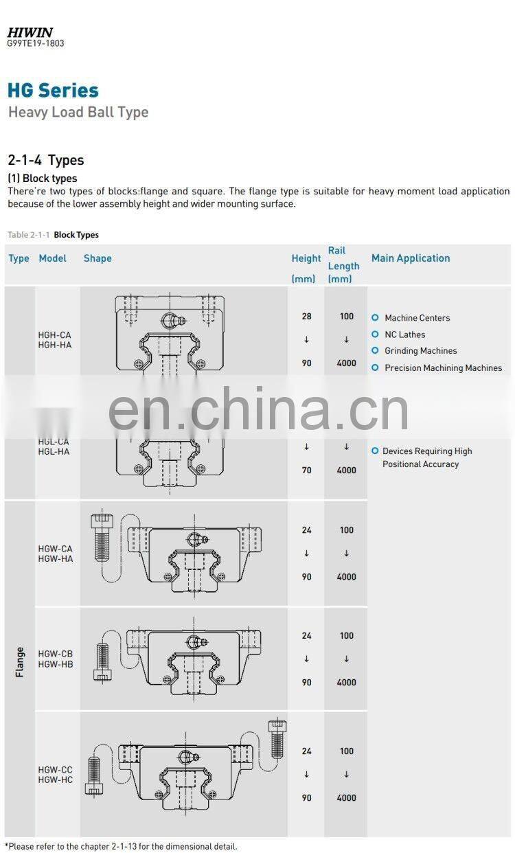 100% Original Hiwin HGH15CA HGH20CA HGH25CA HGH30CA HGH35CA HGH45CA HGH55CA HGH65CA 20HA 25HA 30HA 35HA 45HA cnc linear guide