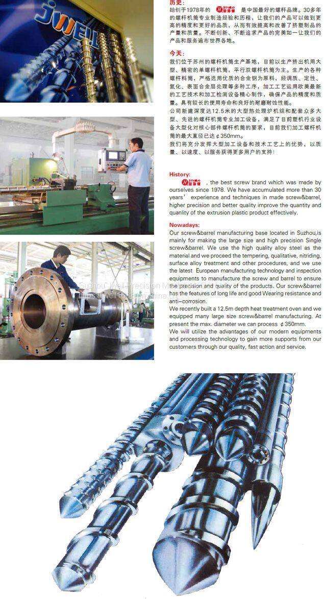 Nearly 40 years of experience and history in the manufactre of screw&barrel so that our products can be more high precision and better quality. Thereby effectively improving and refining the extrusion capacity and quality. Continuous innovation, the constant pursuit of the perfect product, prompt our products and services all over the