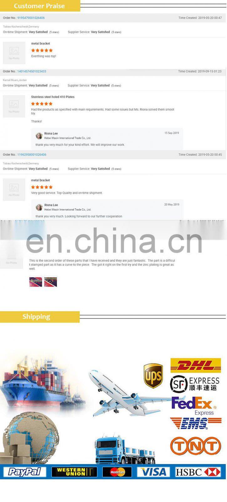 1. professional R&D team 2.We have all specifications of our products can meet customer's diversity needs. 3. your small MOQ acceptable 4. Fast and safe delivery 5. export since 1996 6. OEM&ODM professional provider of metal part 7. quality oriented