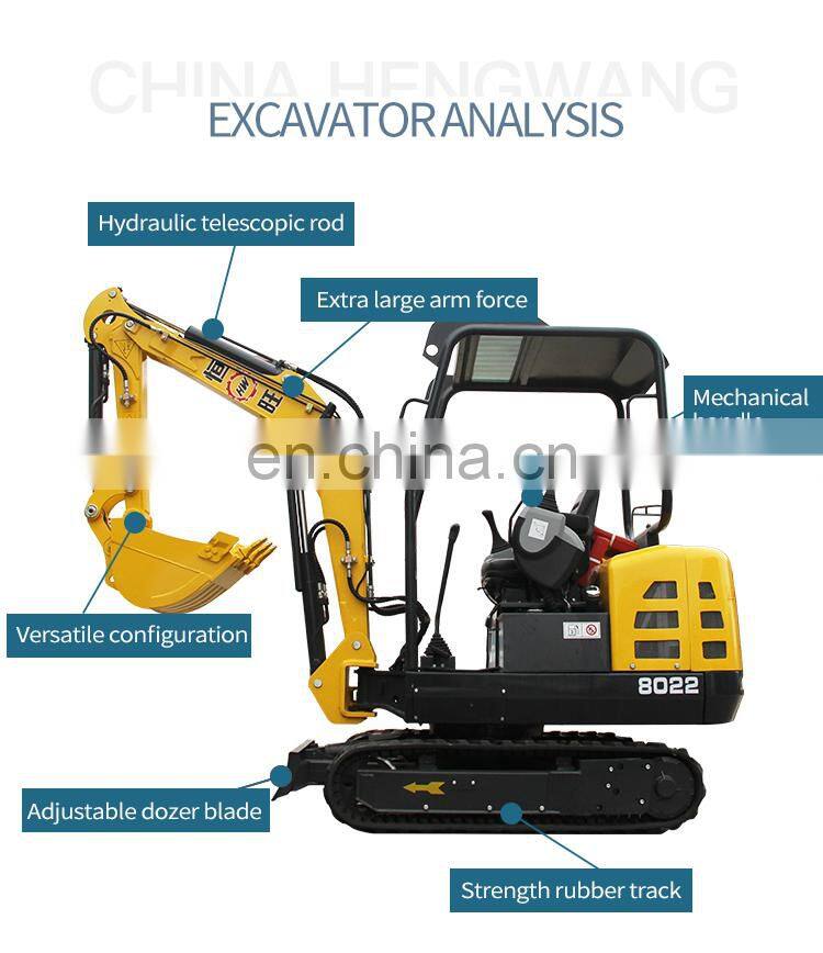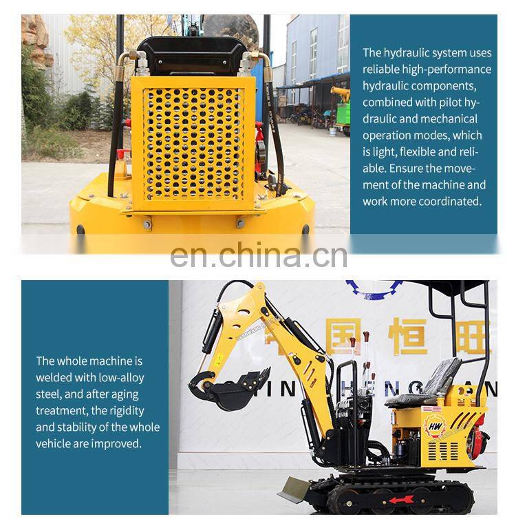 HW mini excavator is designed for small works, small projects, in garden, farmland, municipal works, vegetable greenhouse, digging trench. It is with small engine, simple design, easy to maintain.