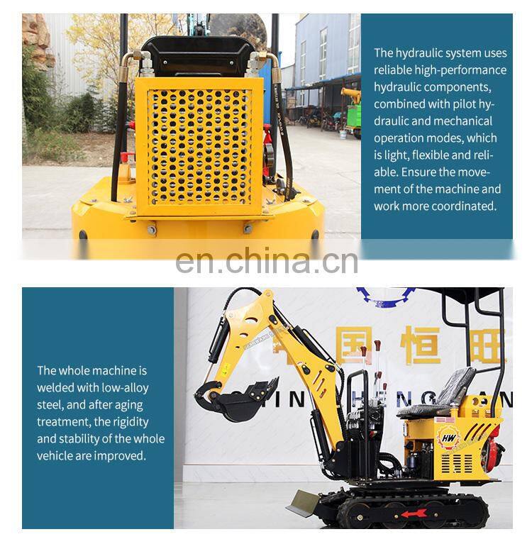 Mini hydraulic excavator is with compact design, and with low oil consumption, it is suitable to be used for small works, small projects, in garden, farmland, municipal works,vegetable greenhouse, digging trench It is with small engine, simple design, easy to maintain.