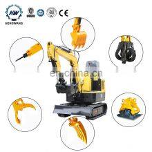 Hengwang HW10 In Stock Wholesale Price 1 Ton Mini Excavator With Stump Grinder Thumb Attachments