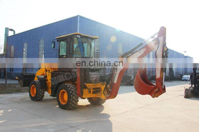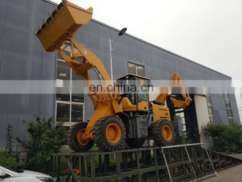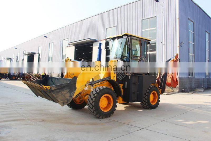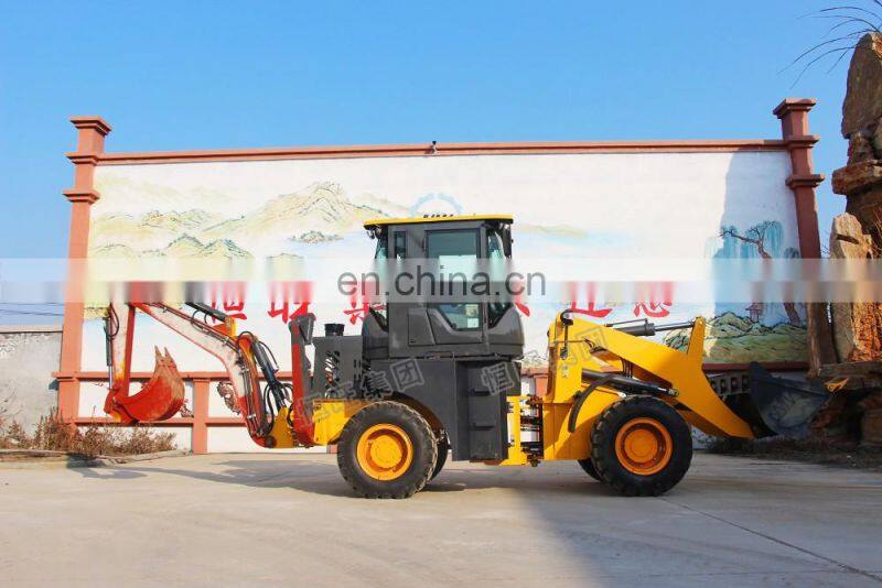 Multi-functional engineering machinery incorporating and loading into an organic whole. It adopts the complete machine is rationally distributed and compact; it is comfortable and convenient to handle, the turning radius is small and the cost performance is high. It is widely used in municipal administration, the construction of projects such as the building, the oil field, water conservancy, the forest farm, the military project, and so on.China hydraulic backhoe loader mini wheel loader digger