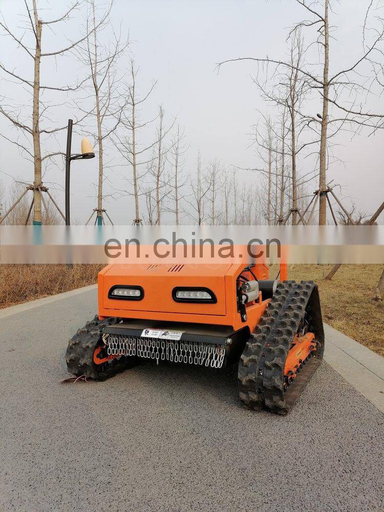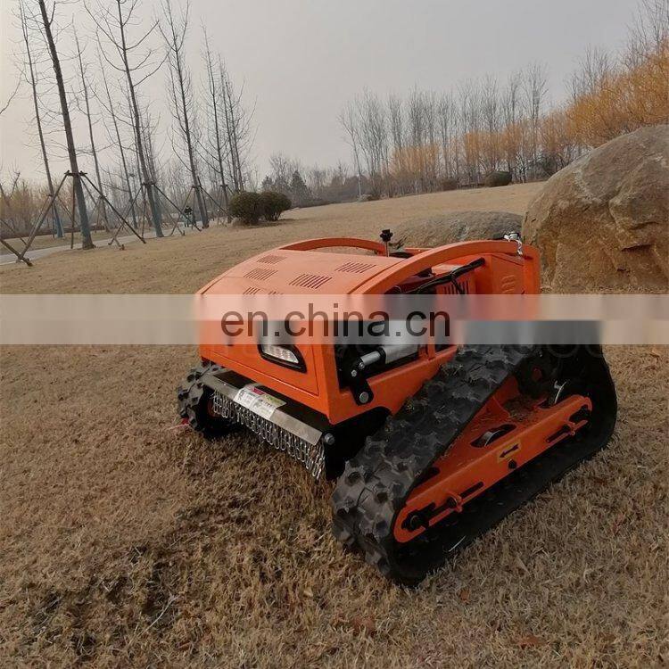 The remote-controlled crawler lawn mower is simple to operate and highly automated. The crawler chassis is of high adaptability. It is of great significance to the development of modern orchards, especially mountain orchards.