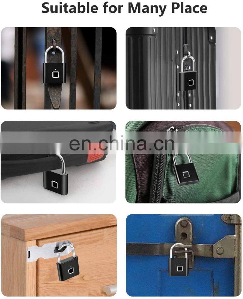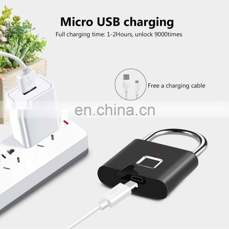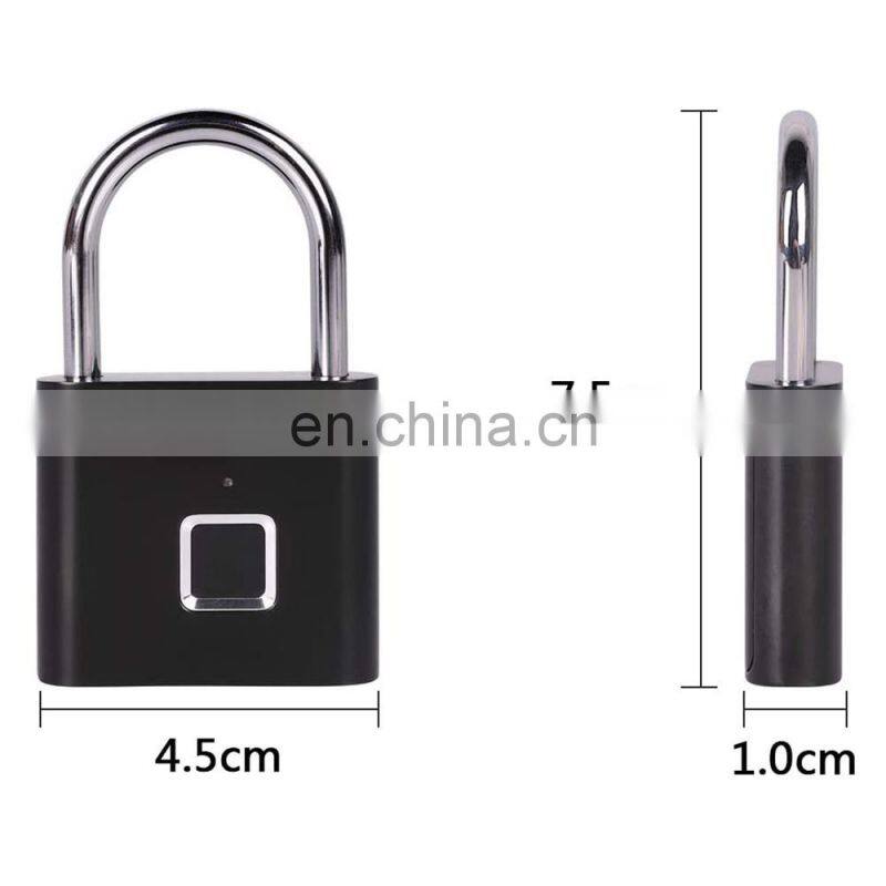 Wholesale Low Price Portable USB Rechargeable IP65 Waterproof Zinc Alloy Smart Biometric Keyless Fingerprint Padlock for Luggage