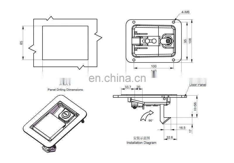 MS858D Waterproof Panel Flush Mount Door Paddle Latch Lock For Box Truck Body
