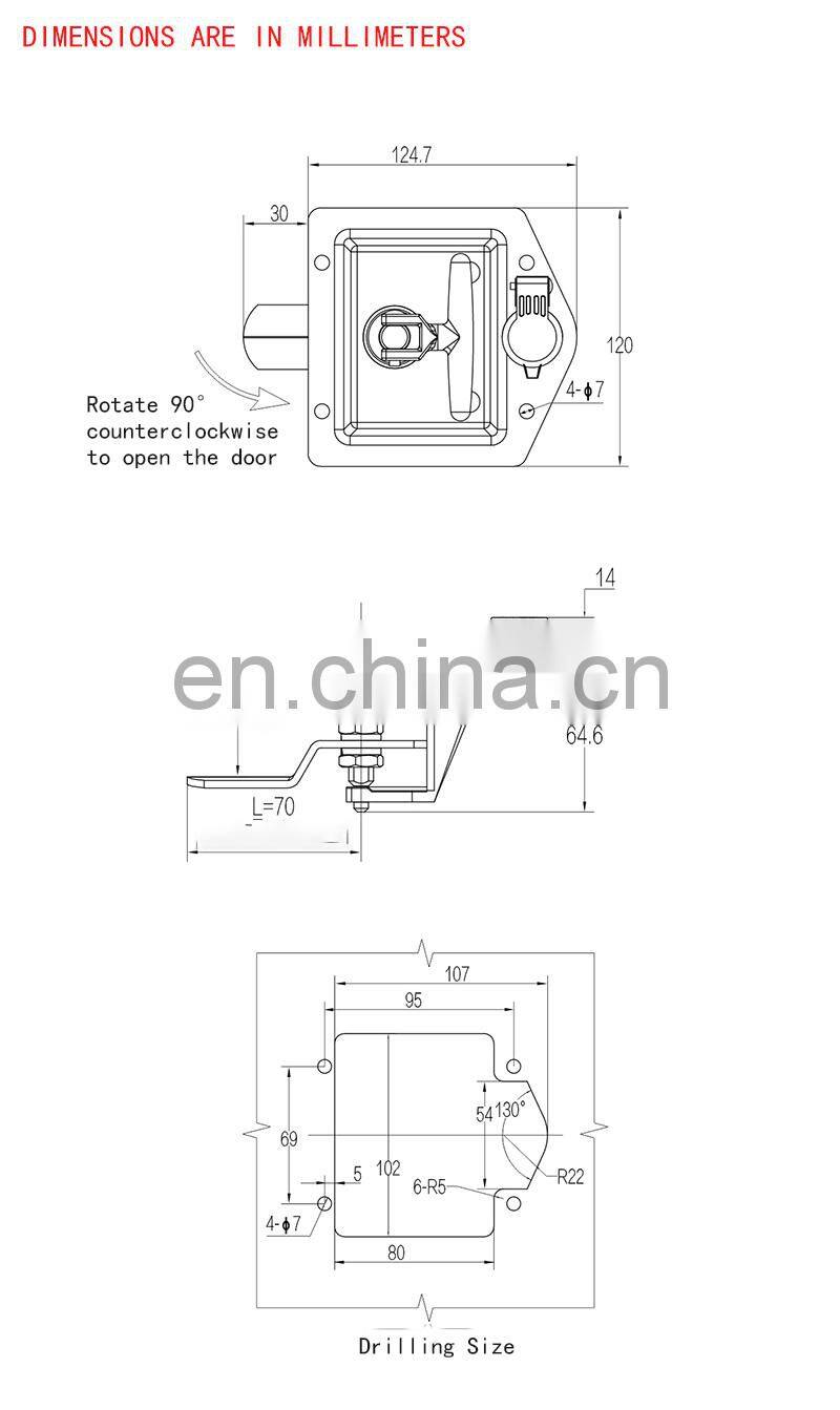 MS858-6 General Heavy Duty Vehicle Zinc Alloy T Bar Handle Tool Box Folding Compression Paddle Latch Lock