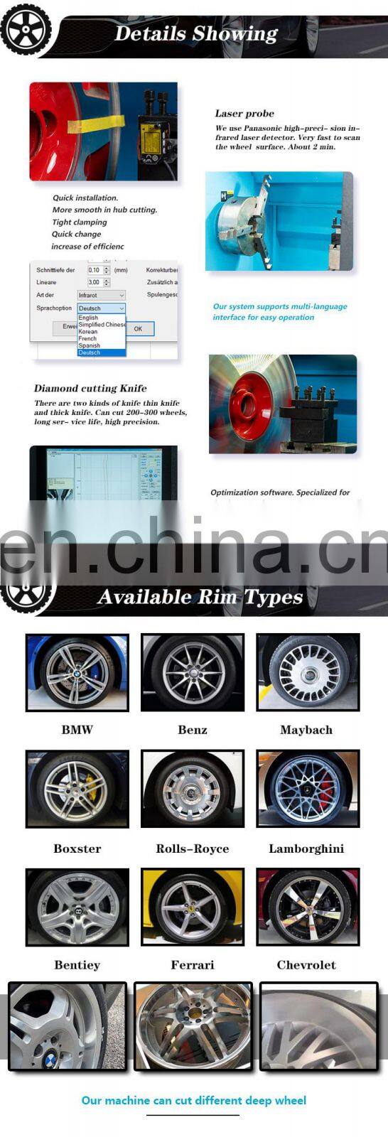 CNC Machine Programming Alloy Wheel Repair Lathe Cnc Rim Diamond Cutting Machine in Stock