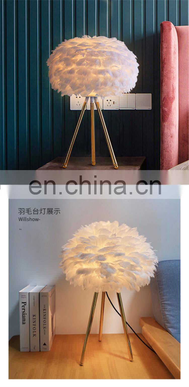 New Arrive Goose Feather Table Lamp For Hotel Bedroom Beside Table Lamp