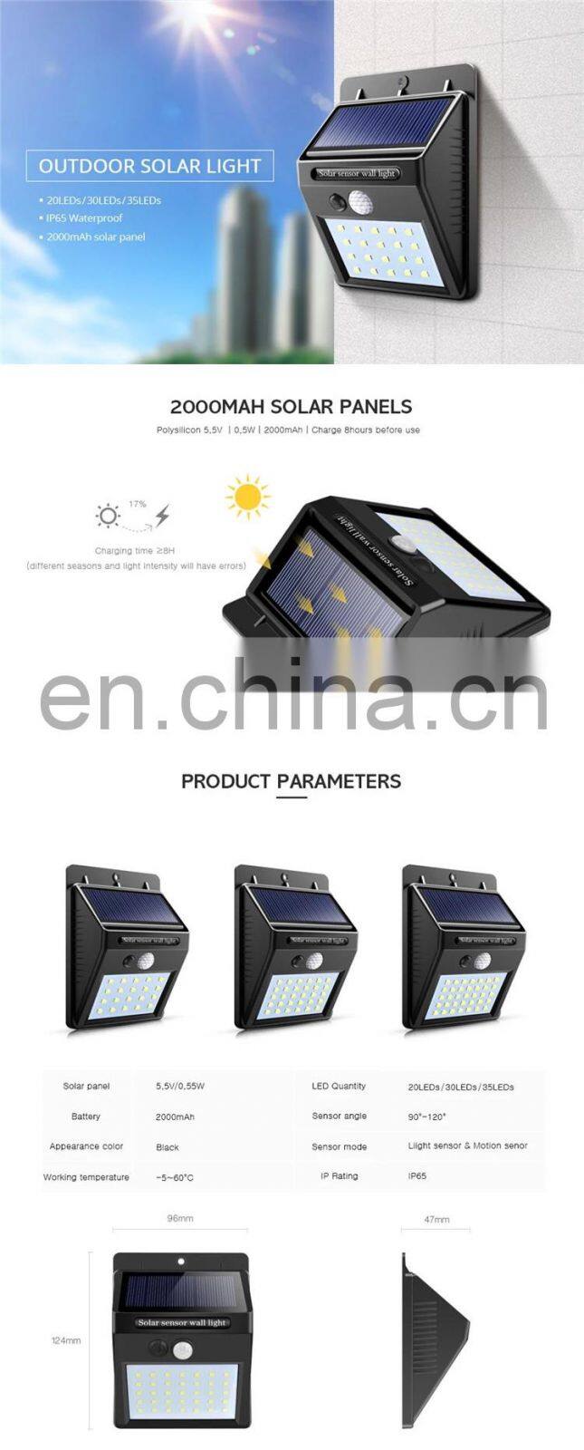 | Solar LED Wall Light | 20LEDs/ 30LEDs/ 35LEDs/ 40LEDs/ 100LEDs/ 118LEDs | 5.5V/ 0.55W | 2000mAh | IP65 |