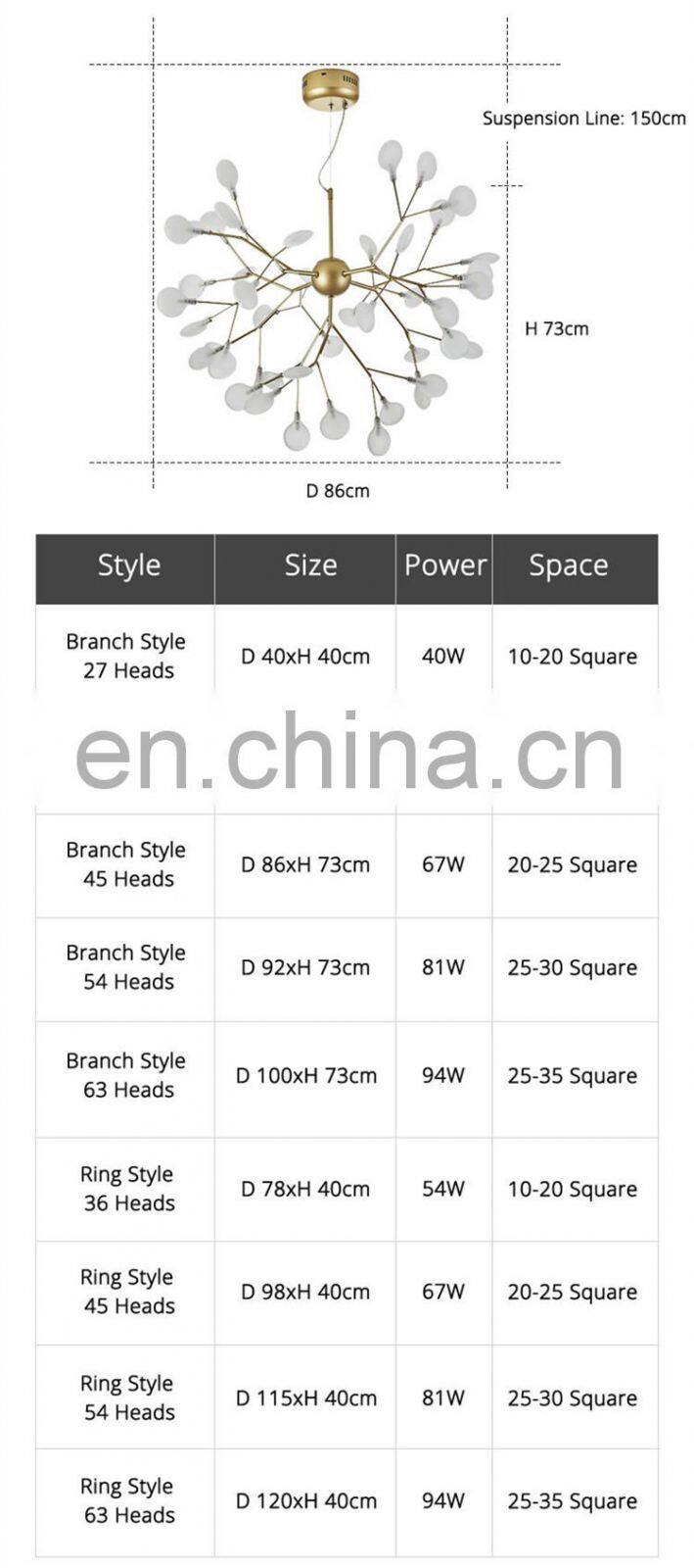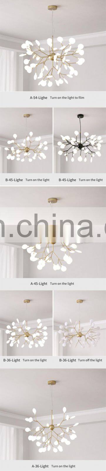 Glass Firefly LED Pendant Lamps Branch Tree LED Chandelier Lighting Modern Luxury Firefly Led Chandelier Lights