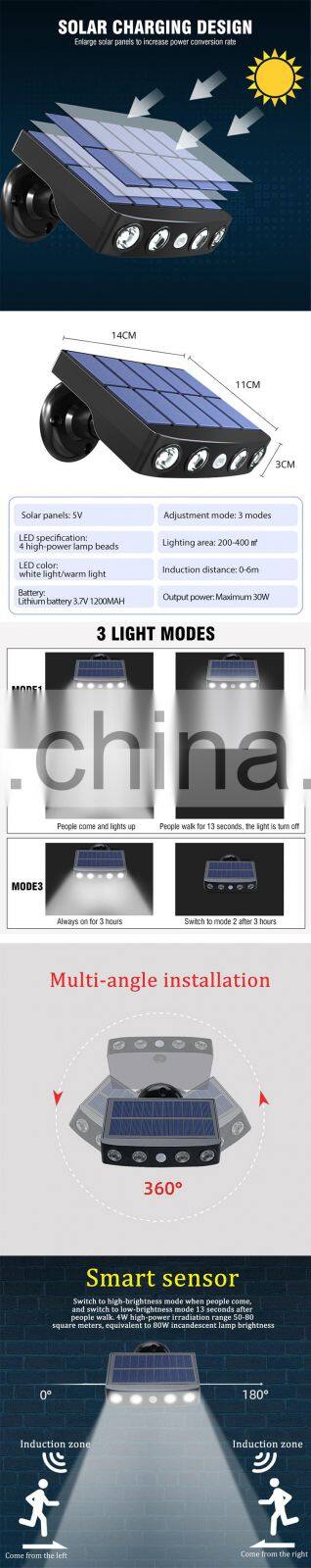 Waterproof IP65 LED Motion Sensor Wall Lamp Fashionable Rechargeable Mount Solar Wall Lights