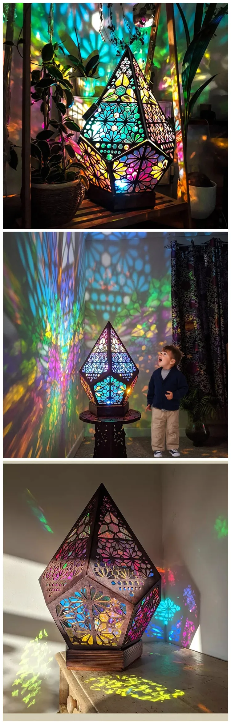 Home > Products > Ungrouped > Wooden Hollow Projection Night Lamp Bohemian Colorful Projector Desk Lamp Household Home Decor Desk Lamp