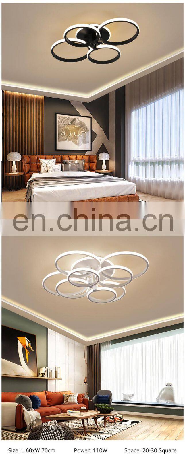 New LED White Square Ceiling Lamp for Living Room Bedroom Modern Circle Rings Chandelier