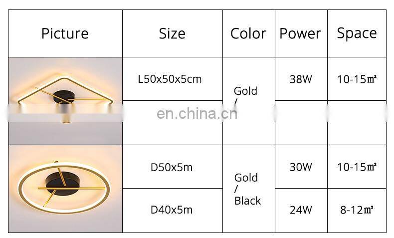 New Arrival Bedroom Living Room Ceiling Light Hallway Golden Circular Square LED Ceiling Light