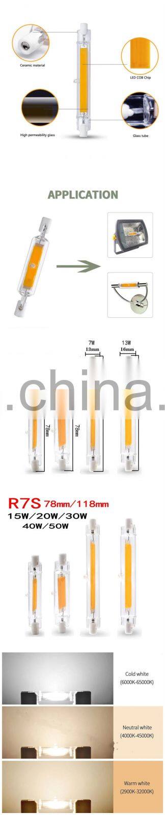 Dimmable LED R7S Glass Tube COB Bulb 78MM 118MM R7S LED Corn Lamp