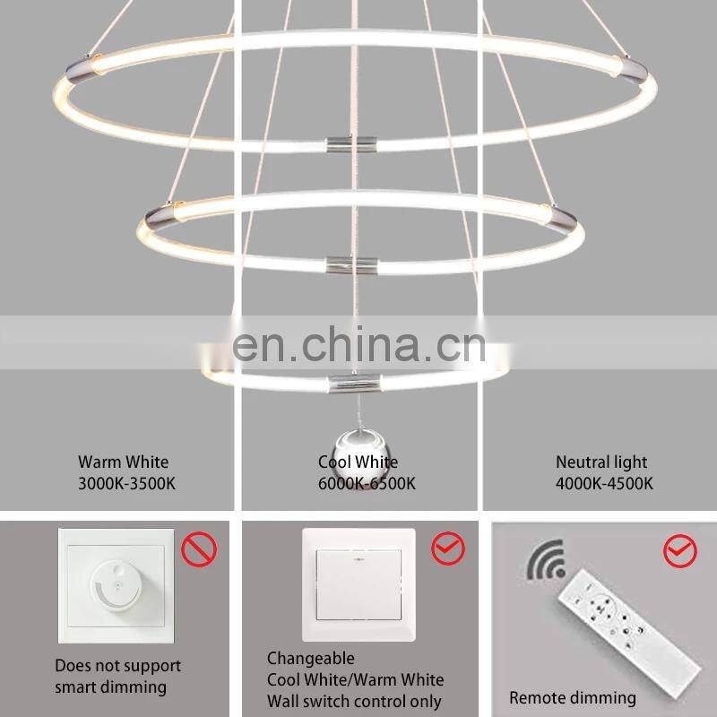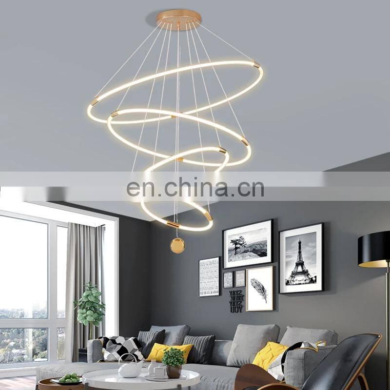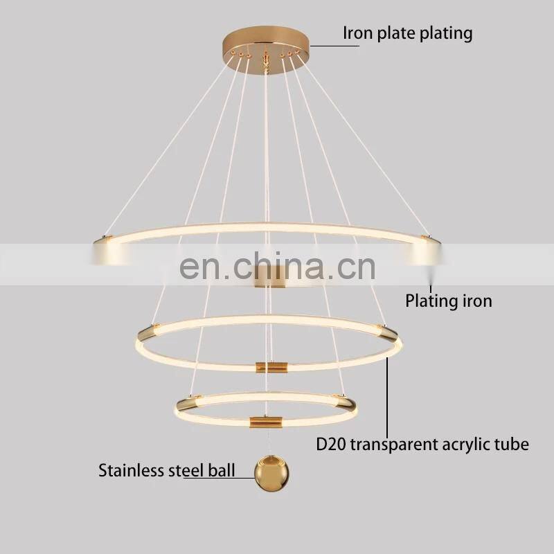 Nordic Latest Interior Ring Circle Acrylic Lighting Aluminium Modern Luxury Chandelier Pendant Lamp