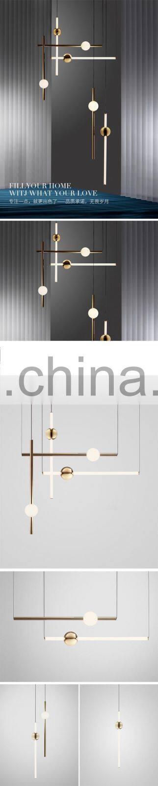 Metal and Glass Hanging Lamp Nordic Creative Vertical Line Chandelier Simple Restaurant Modern Pendant Light