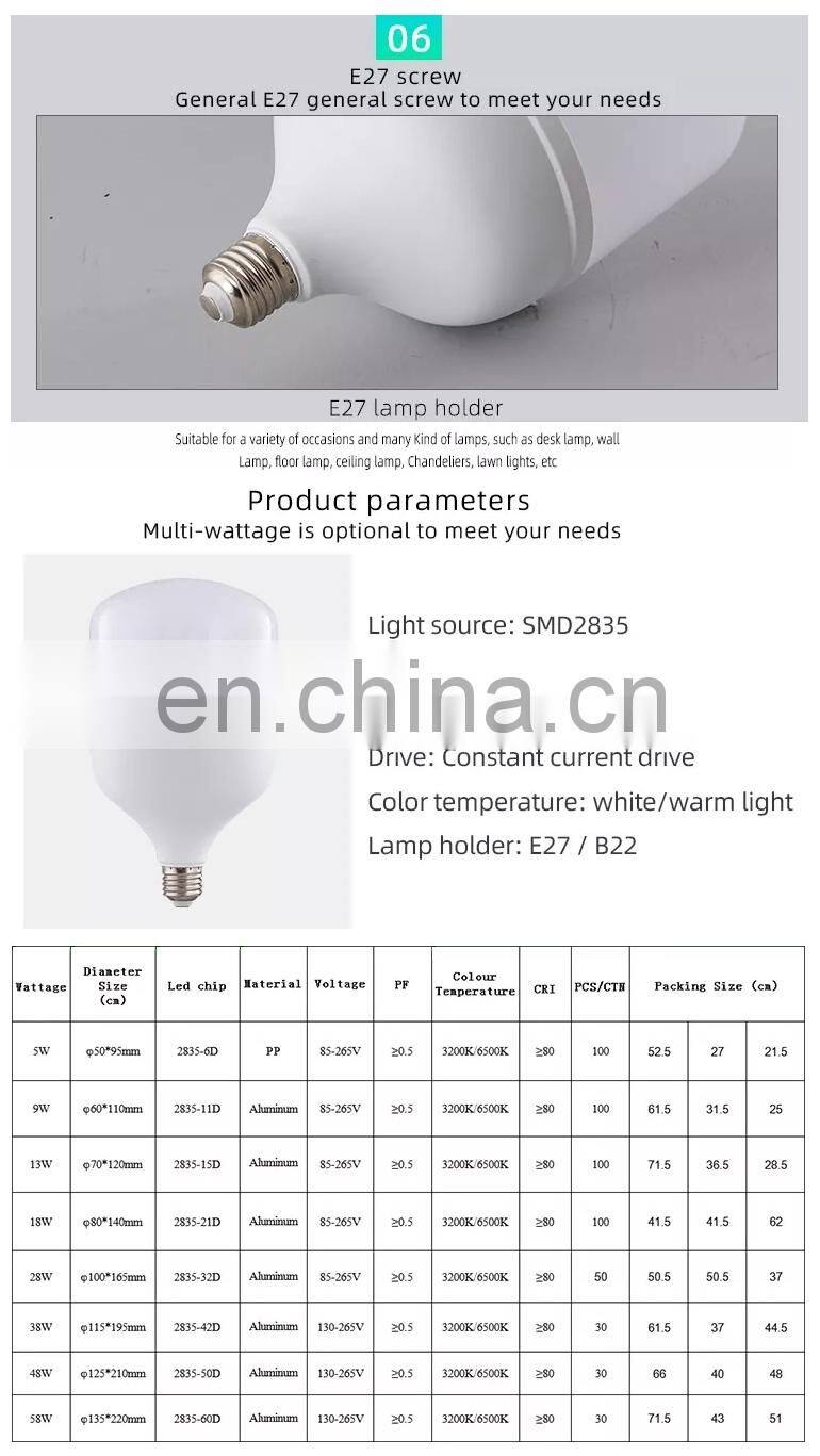 Home > Products > Ungrouped > LED Bulbs T Shape Light Aluminum 5W 9W 13W 18W 28W 38W 48W 58W 220V 2835 Lights For Home