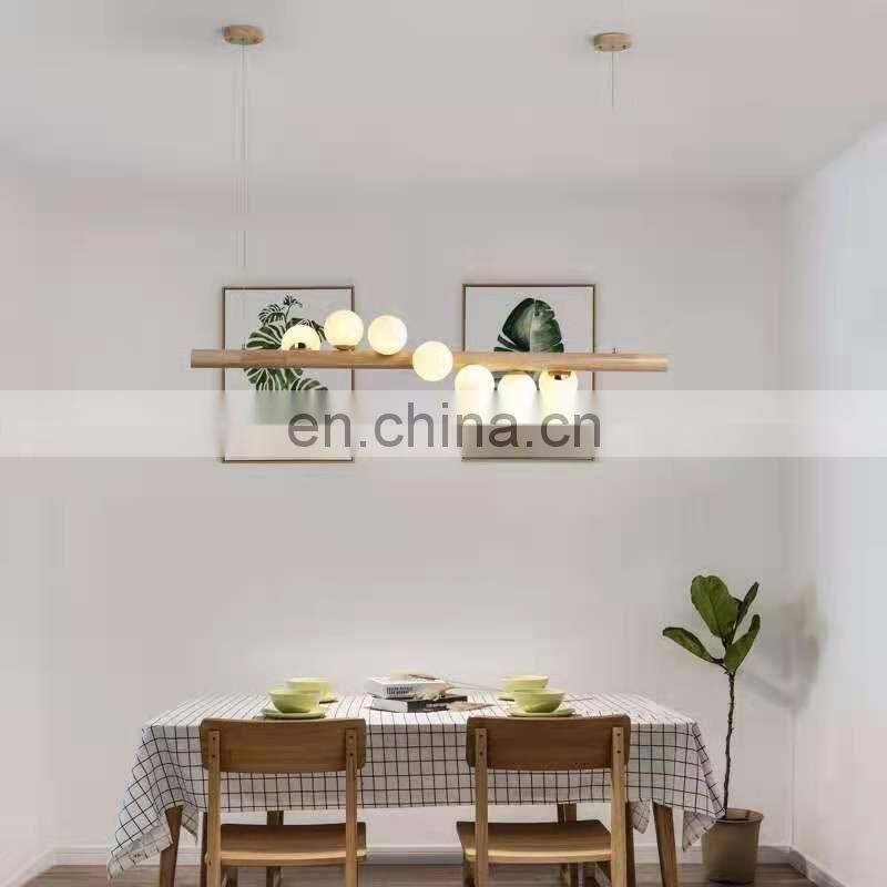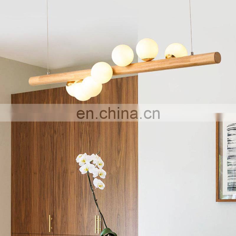 2022 New Design Nordic Modern Long Wooden Glass Ball Pendant Light for Home Restaurant Decoration Chandelier