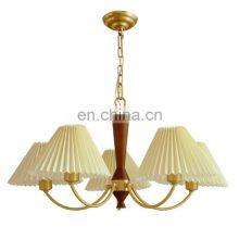 Japanese Retro Chandelier Luxury Ceiling Pendant Light Living Room Walnut Brass LED Lamps For Bedroom Study Dining Room