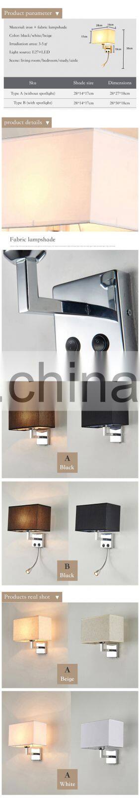 Acrylic LED Wall Lamp Black Gold LED Bedside Corridor Wall Lamp Iron Cloth Lampshade Wall Light