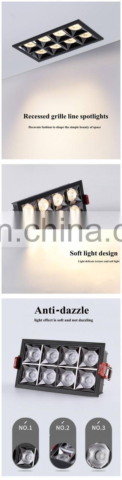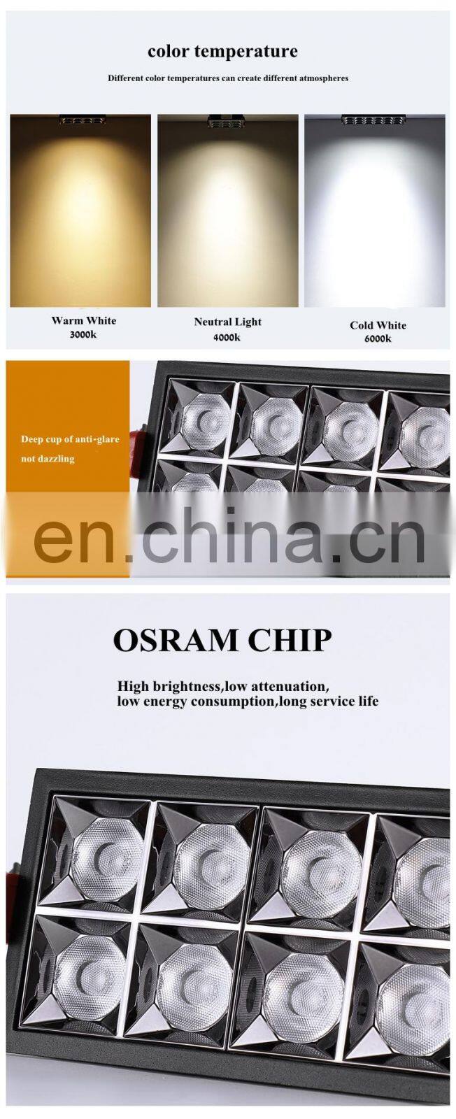 Rectangle Simple Recessed Long Ceiling Embedded Lamp 15 Grids 30W Grille Spot Light Commercial Decor 85~265V LED Line Downlight