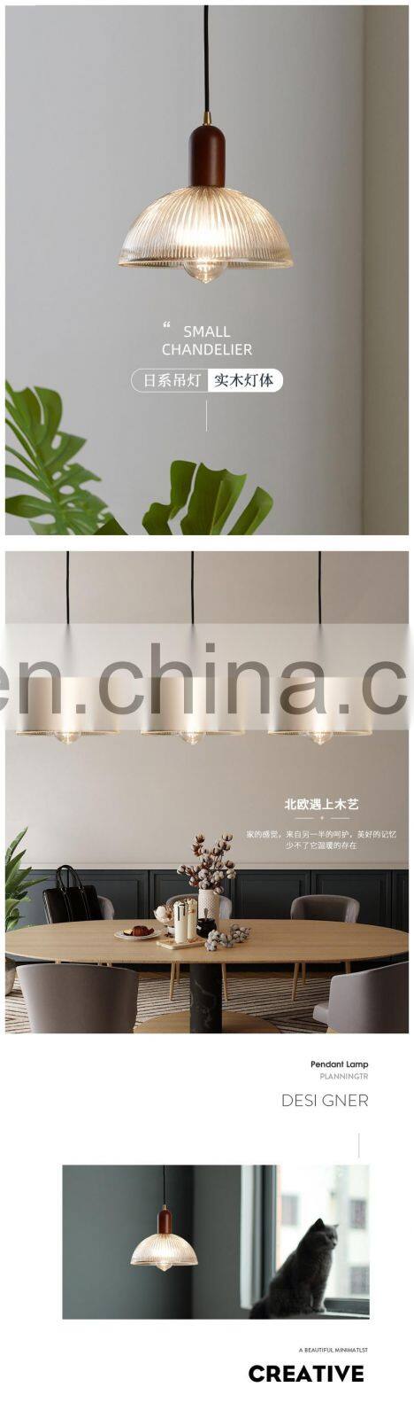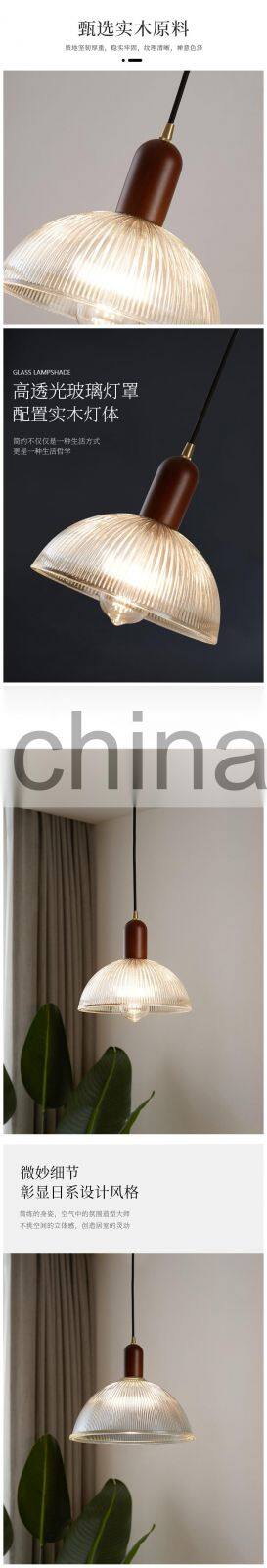 Home > Products > Ungrouped > Japanese LED Pendant Light Nordic Retro Solid Wood Chandelier For Restaurant Dining Table Bar Clothing Simple Glass Hanging Lamp