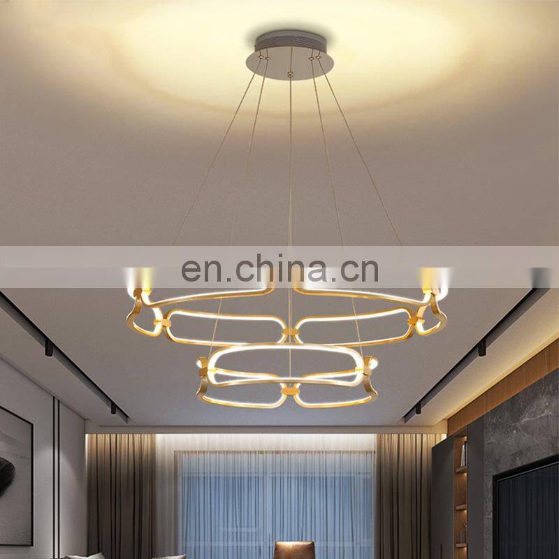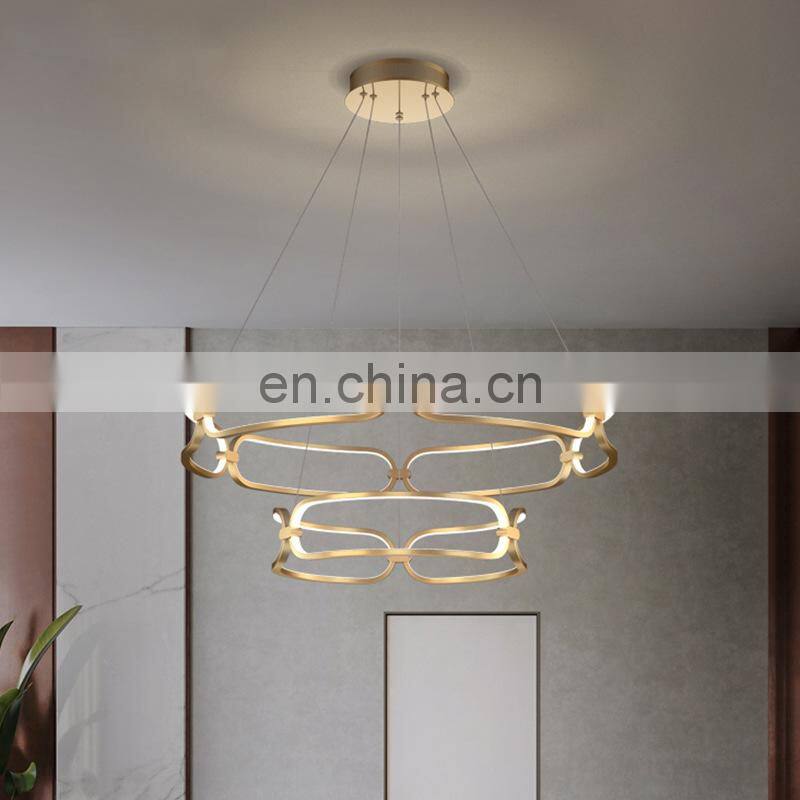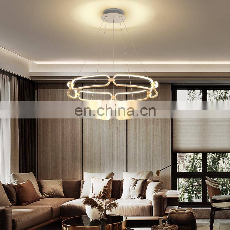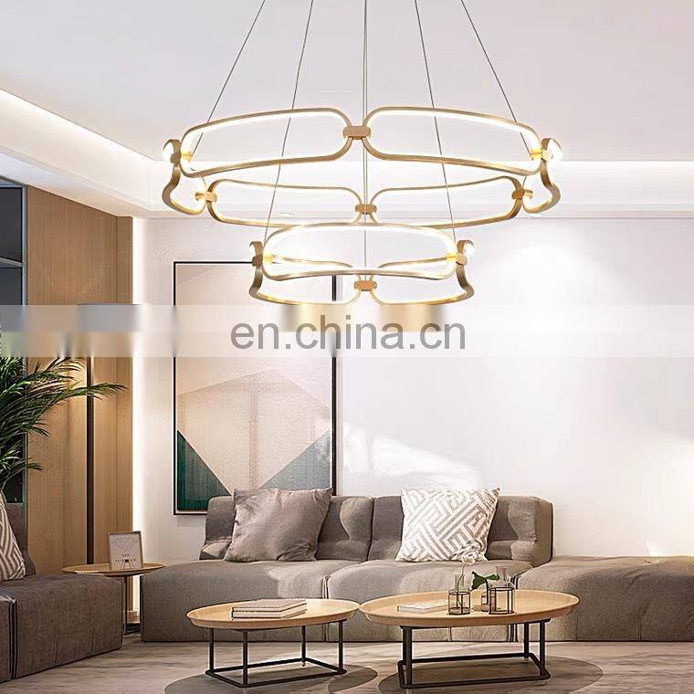 Modern Luxury Creative Round Chandelier Creative Metal Ring Pendant Light For Living Room Hall Hotel Decor Ceiling Hanging Lamp
