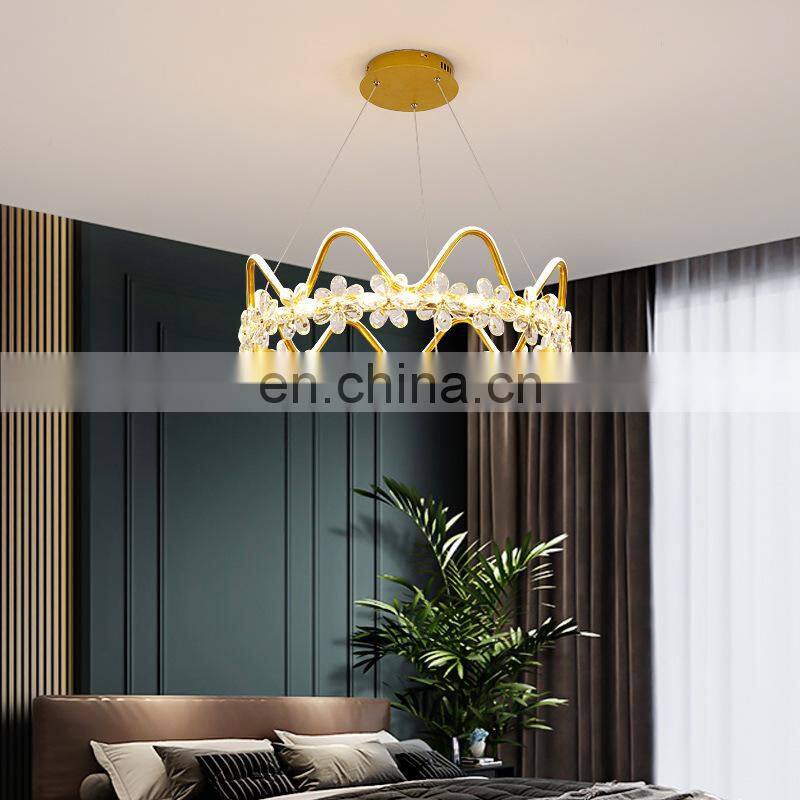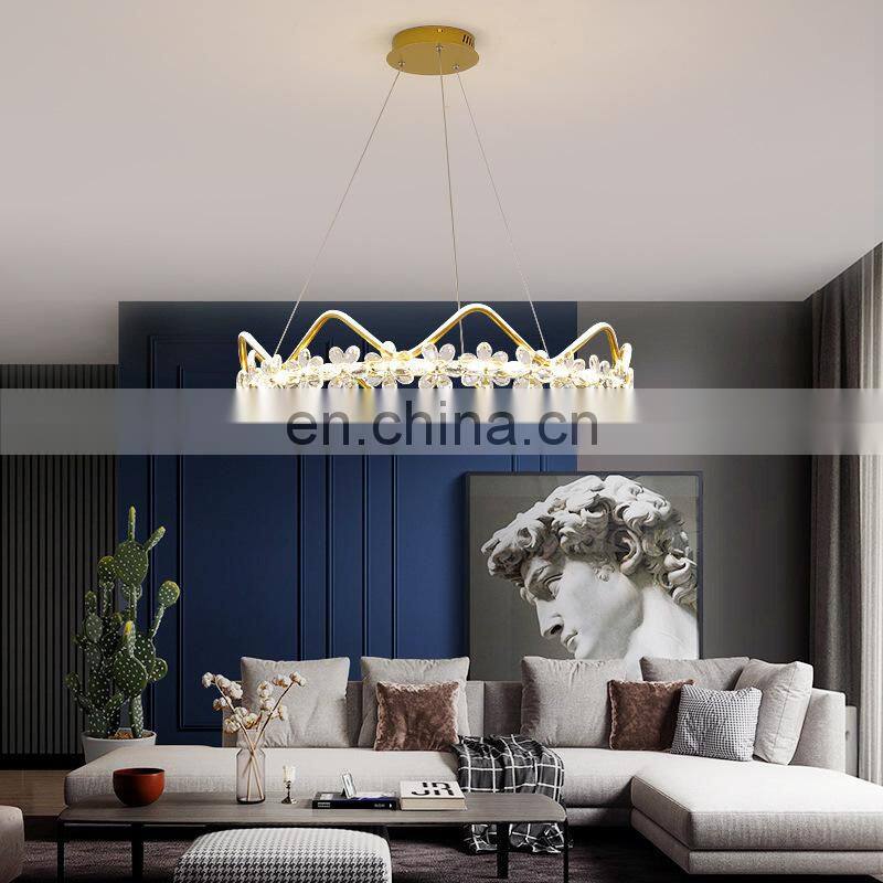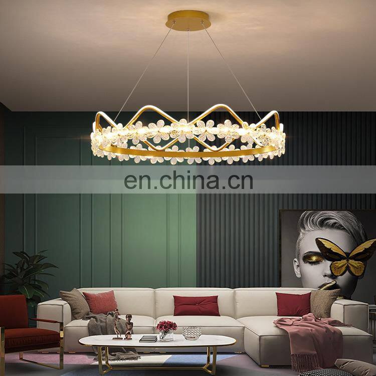 Postmodern Gold Pendant Light Round LED Ring Luxury Ceiling Lamp Modern Home Decoration Crown Chandelier