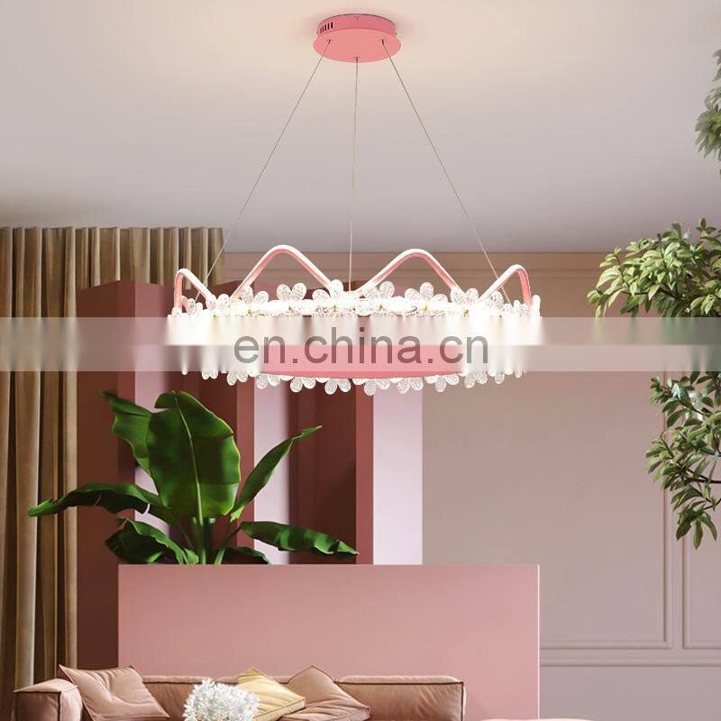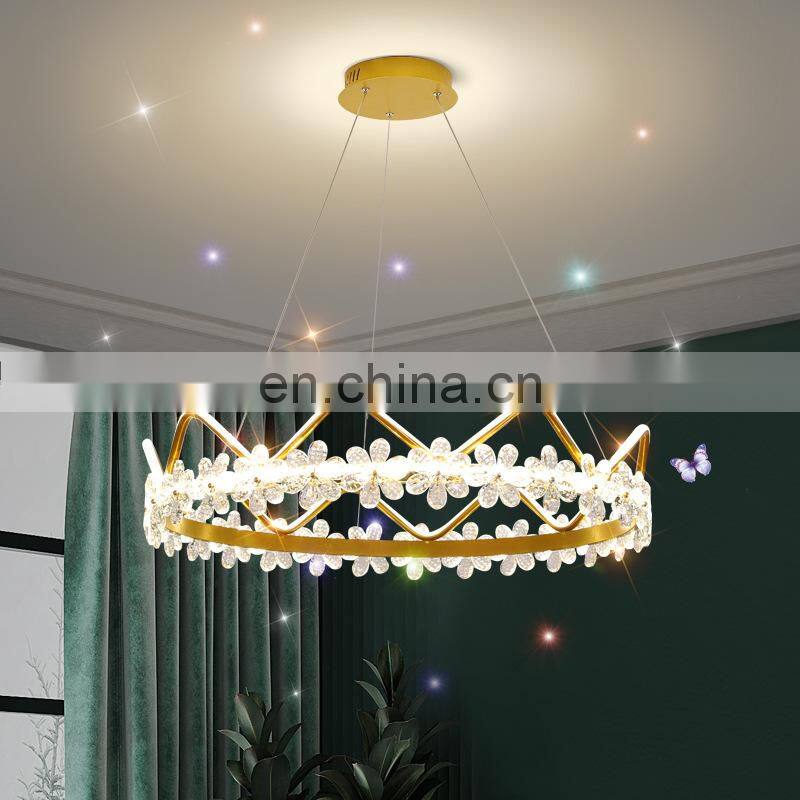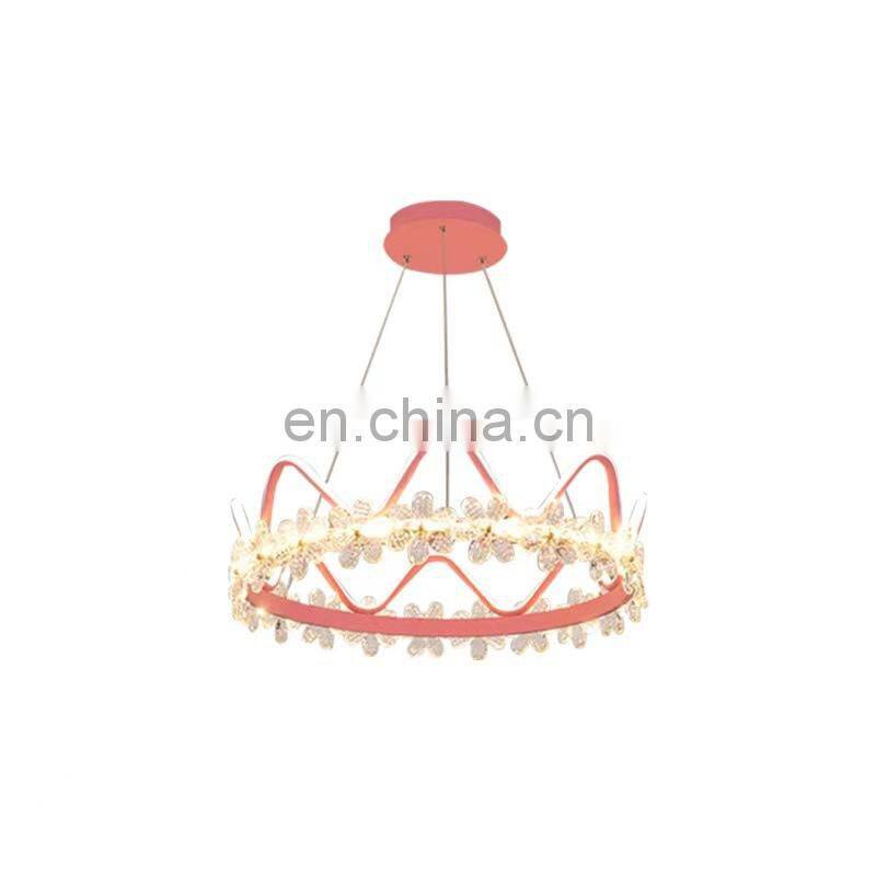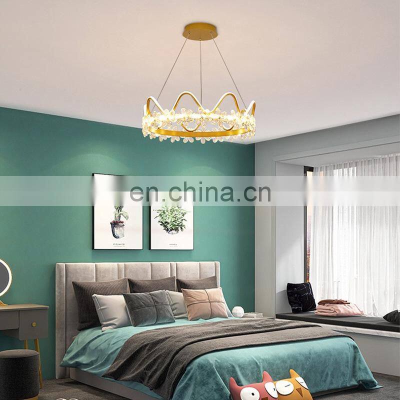 2022 New Design Children Room LED Pendant Light Crystal Chandelier Indoor Decorative Girls Crown Ceiling Lamp